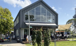 ConnecT HARUMIは、晴海ふ頭公園内に建つ地上2階建てのカフェ・コワーキングスペースです。晴海ふ頭というと先ほど紹介した晴海客船ターミナルが永らくランドマークとなっていましたが、こちらの建物は取り壊されるターミナルの三角屋根のイメージを継承するデザインとなっているのが特徴。また、外壁はグレ...