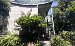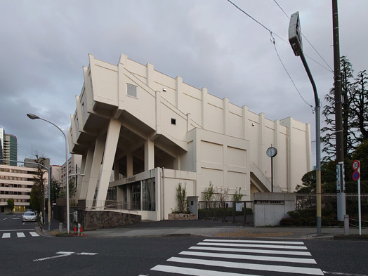 芝学園講堂は、巨大ロボットの一部のようなダイナミックな外観が特徴的な講堂です。道路側に大きくせり出した屋根部分は、側面から見てみるとよく分かるのですが、講堂の2階部分の客席がそのまま外観に表れたもの。こういったホールは開口部の制限や音響の関係からどうしても閉鎖的で画一的な箱型になりがちですが、ホール...