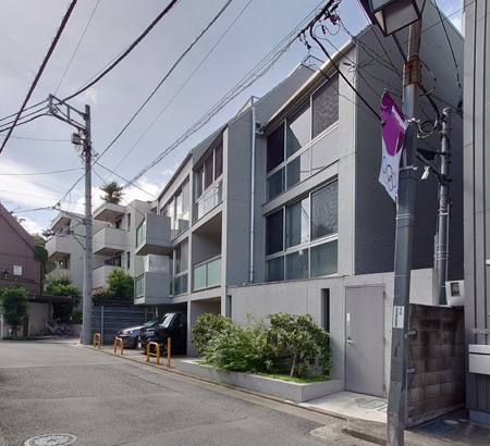 用賀Yハウスは、用賀駅から程なく歩いたところに建つ3世帯が暮らす住宅です。コンクリートのスマートな外観は、街に出してと世帯間のプライバシーを守りつつ住宅全体を一体化しているように見えますが、内部には中庭が設けられていてそれぞれの生活や交流するようにデザインされています。道路に面して設けられたアルミル...