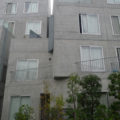 建物の外観は安藤氏のトレードマークとも言えるコンクリート打ちっ放しで、1階部分は規則的にコンクリートの柱が並ぶ軒下空間となっています。