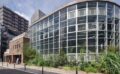 道路際のロビー空間を半屋外に改修し、街と建築の中間領域をつくりつつ、カフェやベーカリーといった地域の人が気軽にはいれる施設が整備されています。