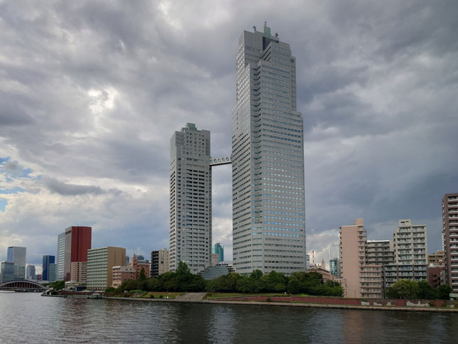 それぞれの機能によって表情の異なる2つのタワーが寄り添い、空中歩廊と足元のアトリウムで繋がることによって生まれた建物は、隅田川沿いのランドマークとして、知的で優雅に佇んでいます。
