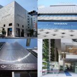 銀座の角地のガラスの外装の中には、105角のヒノキ材が空間を包み込み、岐阜の檜の森をイメージした深いグリーンの空間が広がっています。