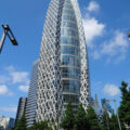 外観は1階が3マスの窓で分割されて、枝葉のような小さな単位の集積によって樹木のように建築が立ち上がっているのも注目ポイント。樹木の「根」の部分が市民が集まり樹木全宅をはぐくむようなイメージが建築化されているのもユニークです。