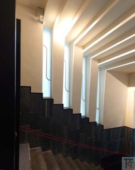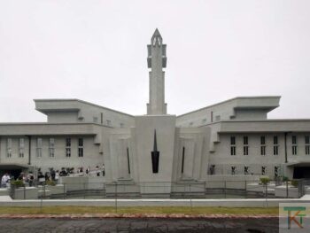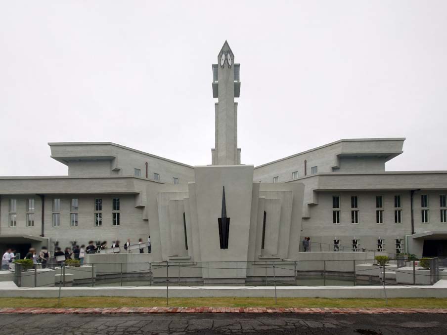 翼を広げた白鳥のような外観が特徴的な建物は、大胆な造形と幾何学的な装飾によるクールで抑制の効いたデザインが両立しているのが面白いです。