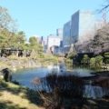 深川図書館の北側に広がる清澄庭園は、池の周囲に築山や名石を配置した回遊式林泉庭園で、現在は都立公園として広く開放されています。