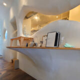 有機的な曲線を描く家具や、遊び心に溢れた照明など見どころも満載で、建築巡りの合間に休憩を兼ねて訪れるのもおススメのお店です。