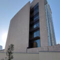 近くに建つ高橋診療所はスパニッシュ風でしたが、こちらの建物は大谷石を多用し、水平庇が特徴的なデザインとなっていて、フランクロイドライトの影響が感じられるのが面白いところ。