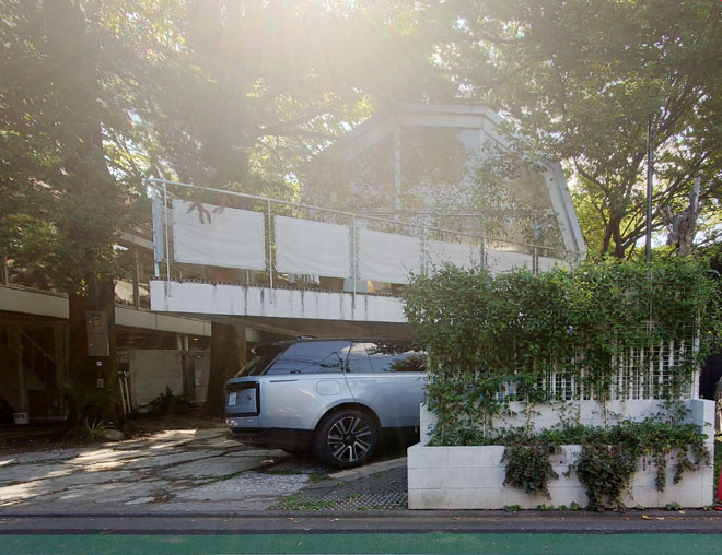 羽根木の森アネックスは、集合住宅 羽根木の森の北側に建ち、ピロティによって持ち上げられたスラブに半円状の折板屋根が乗っているのが特徴の建物。