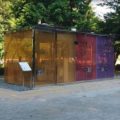 このトイレの特徴は何といっても鍵を締めると不透明になるガラスで作られた外壁で、今までの公衆トイレのイメージを覆す明るく清潔で美しい建築が目指されています。