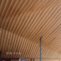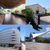 既存のコンクリートの建物と対比するような自由な曲面とやわらかな竹の表情がとても印象的な建物です。