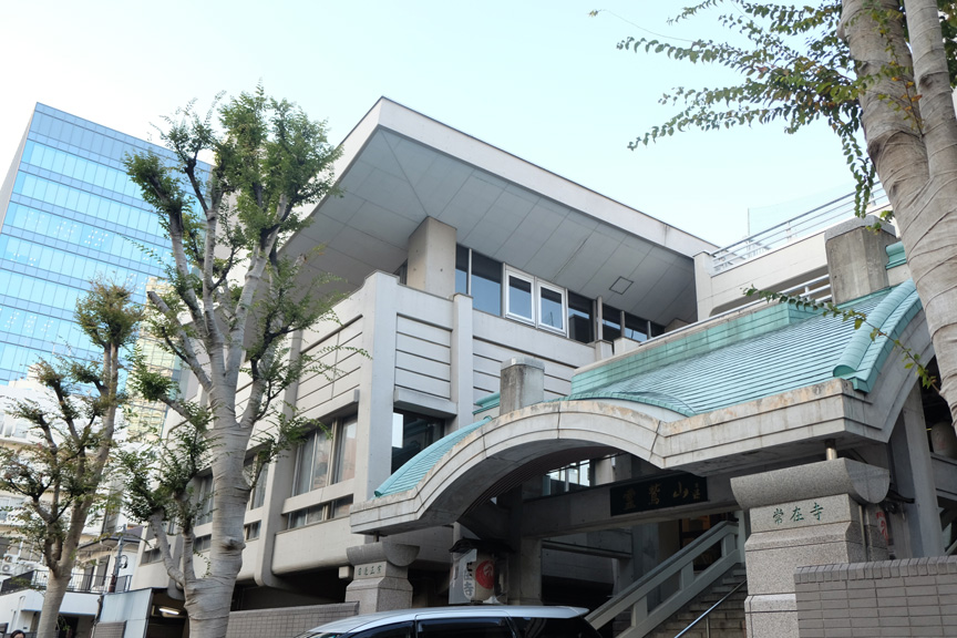 とげぬき地蔵の名でも知られる高岩寺は、1596年(慶長元年)に湯島に開かれた由緒ある神社で、巣鴨には1891年(明治24年)に移転してきました。現在の本堂は1957年に建てられたもので、東北大学教授で戦後の鉄筋コンクリート寺院にも造詣が深い横山秀哉氏が設計を手掛けました。地下に事務機能をまとめ、シン...