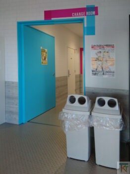 待機ルームで待つ傍ら、更衣室で動きやすい格好に着替えます。