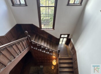 1階はこちらの玄関ホールを中心に奥に応接間、向かって左手に食堂、振り返った手前側に客間とそれぞれの部屋が接続されています。