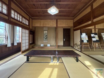 こちらの建物は最盛期には1000人以上が働いていた本店工場(現在のUR入間黒須団地)の事務所として明治時代に建てられた和風建築で、現在地へは曳家してその姿を残しています。
