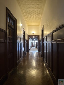 ホール脇の貴賓室は内部に入ることはできませんが、この建物の中でも特にこだわった内装をみることができます。