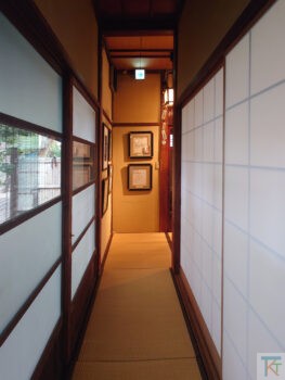 お手洗いに続くこちらの裏手の廊下も、昔の建物らしい空間づかいが味わい深いです。