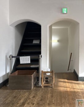 こちらの階段は立入できないですが、さりげなくアーチ状に形作られた開口上部のデザインが可愛らしいです。
